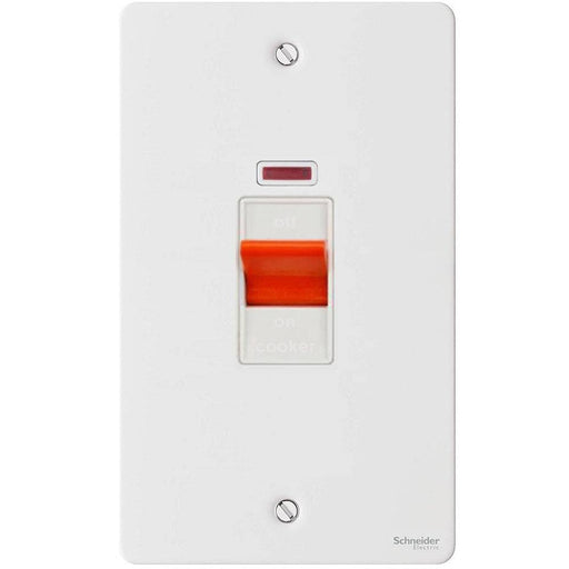 View full detailsThe Schneider GU4221WPW is part of the Schneider Ultimate Flat Plate range. This 50A DP Control Switch With Neon from Schneider has a 1.5mm deep, w...