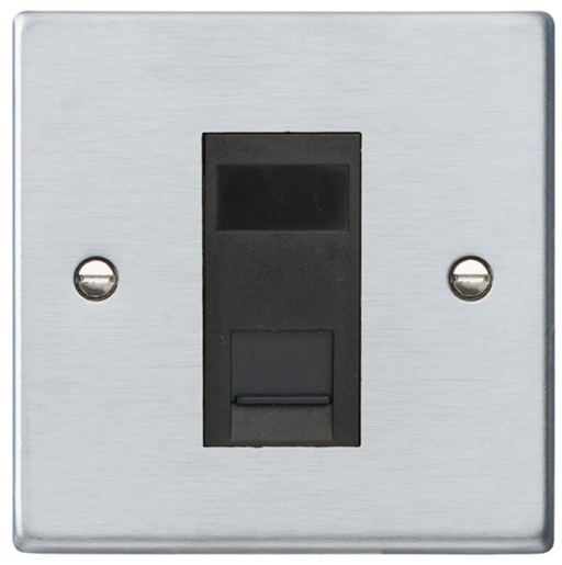 Hamilton 76J45B Hartland Satin Chrome 1 Gang Unshielded RJ45 Outlet - Black Insert
