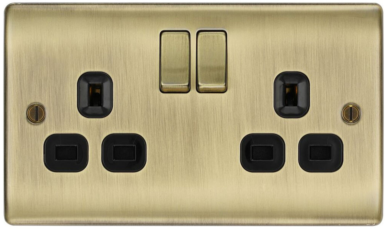 The NAB22B is a 13A double socket from the BG Nexus Metal range, finished in antique brass with black inserts. This range of switches and sockets h...