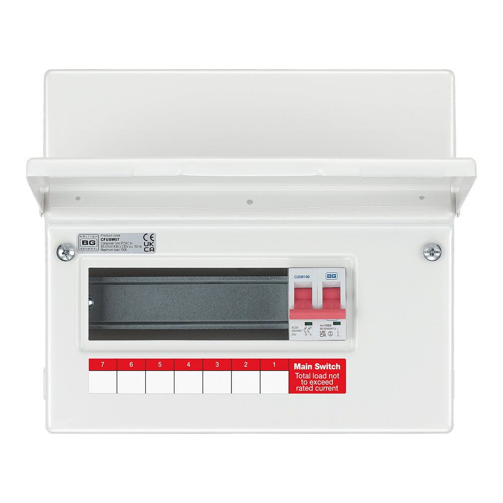 View full detailsThis BG Fortress metal 4 way Main Switch Consumer Unit offers a modern stylish design and profile with flexible circuit combinations. It has doubl...