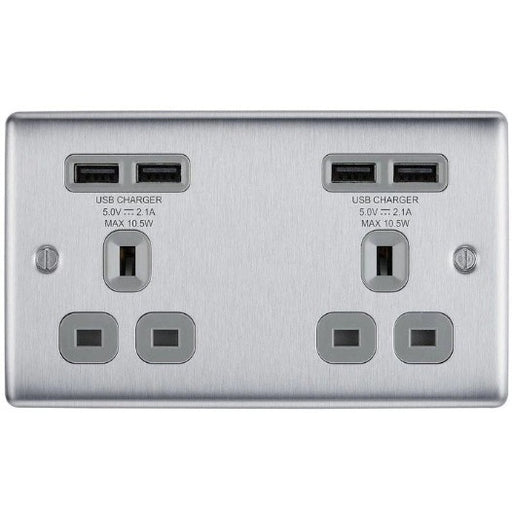 View full detailsThe NBS24U44G is a 13A double USB unswitched socket with 4 type A ports. Auto-detects the USB device. This range of switches and sockets has been d...
