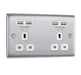 BG Nexus Metal Brushed Steel 13A Double USB Unswitched Socket NBS24U44W