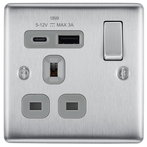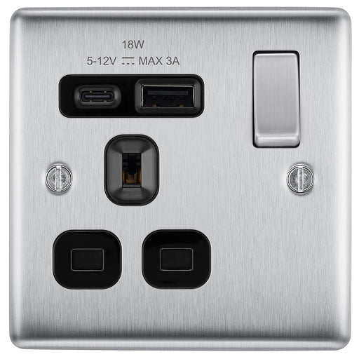 View full detailsThe NBS21UAC18B is a 13A single USB socket with A and C ports from the BG Nexus Metal range, finished in brushed steel with black inserts. This ran...