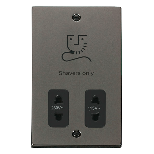 View full detailsThe VPBN100BK is a shaver socket from the Click Deco range by Scolmore, finished in black nickel. The Click Deco range has a distinctive raised pla...