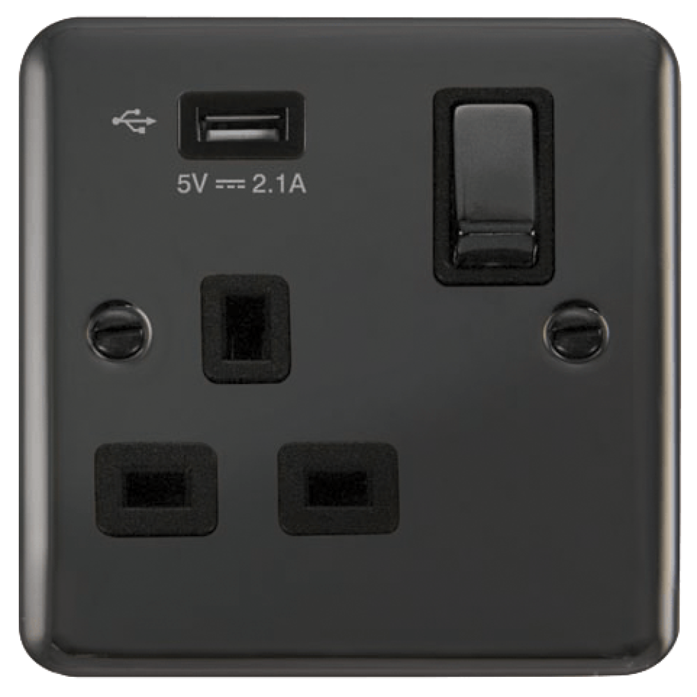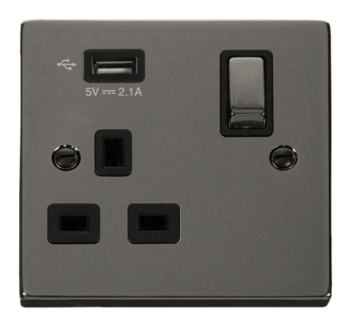 View full detailsThe VPBN571UBK is a 13A single USB socket from the Click Deco range by Scolmore, finished in black nickel. The Click Deco range has a distinctive r...