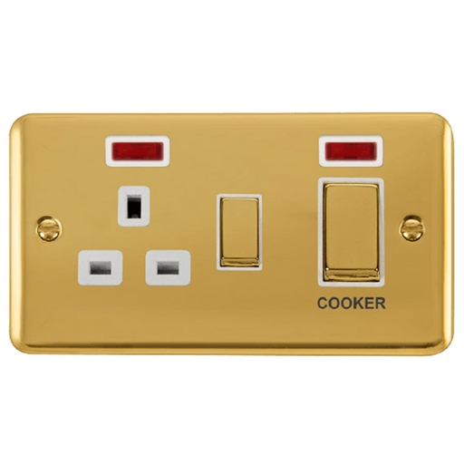 View full detailsThe DPBR505WH is a 45A cooker switch with 13A socket from the Click Deco Plus range by Scolmore, finished in polished brass. Expertly crafted from ...