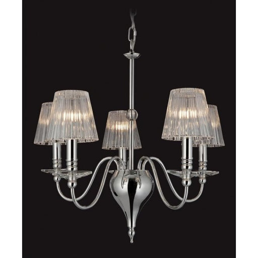 An attractive contemporary five light pendant fitting in high quality polished stainless steel.