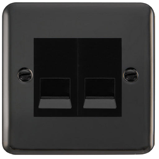 View full detailsThe DPBN126MBK is a double slave telephone socket from the Click Deco Plus range by Scolmore, finished in black nickel and built using the Click De...