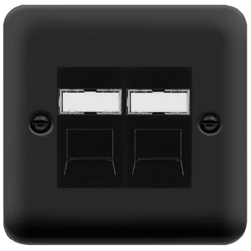The DPMBRJ452BK is a double cat5e data socket from the Click Deco Plus range by Scolmore, finished in Matt Black and built using the Click Deco Eur...