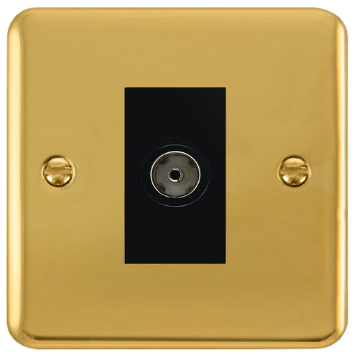 View full detailsThe DPBR065MBK is a TV socket from the Click Deco Plus range by Scolmore, finished in polished brass and built using the Click Deco Euro Modular sy...