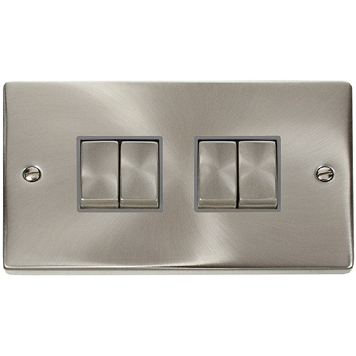 View full detailsThe VPSC414GY is a 4G Light Switch from the Click Deco range by Scolmore, finished in Satin Chrome. The Click Deco range has a distinctive raised p...
