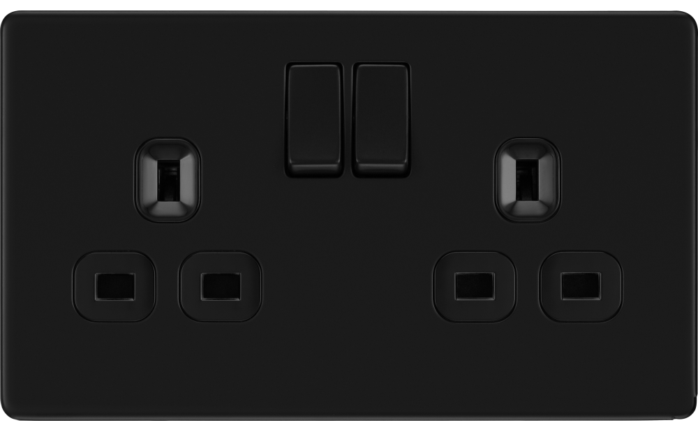 View full detailsThe FFB22B is a 13A double socket from the Flatplate Screwless range, finished in Matt Black with black inserts. This range of switches and sockets...
