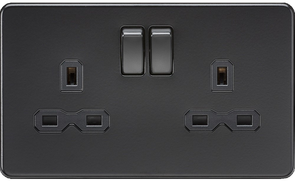 View full detailsThe SFR9000MBB is a double socket in Matt Black from ML Knightsbridge. The Matt Black Screwless range has a low profile plate with a 4.3mm projecti...
