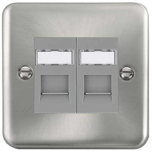 View full detailsThe DPSCRJ452GY is a double cat5e data socket from the Click Deco Plus range by Scolmore, finished in satin chrome and built using the Click Deco E...