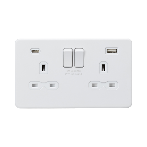 View full detailsThis Knightsbridge switched socket combines traditional 13A power with convenient USB charging. Finished in matt white with a screwless flat plate ...