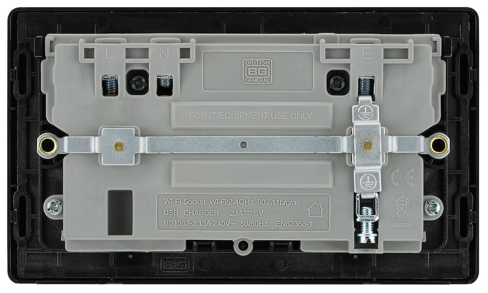 The PCDBC22UWRB is a Wi-Fi extender with 13A double USB socket from the BG Evolve range, finished in black chrome. The BG Evolve range is new on the outside with its polycarbonate front plates but has the same trusted internal technology found in the Nexus Metal range. The Evolve range gives you the ease and flexibility to remove and change the front plates, allowing on-trend finishes without losing the level of quality and reliability.