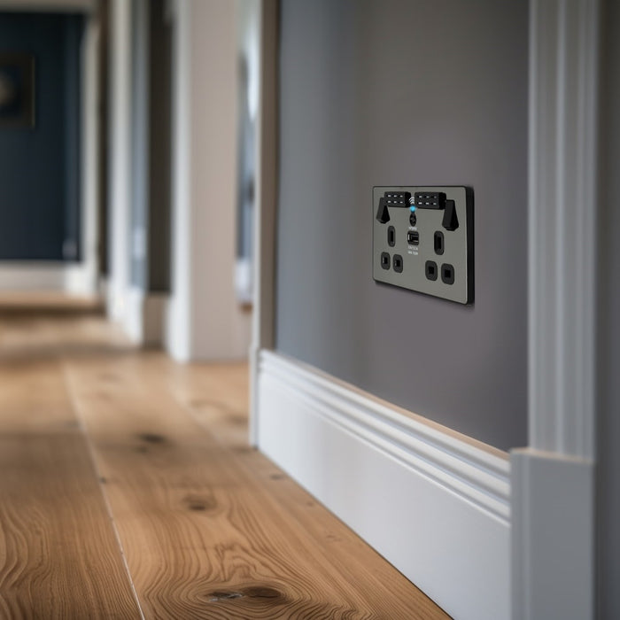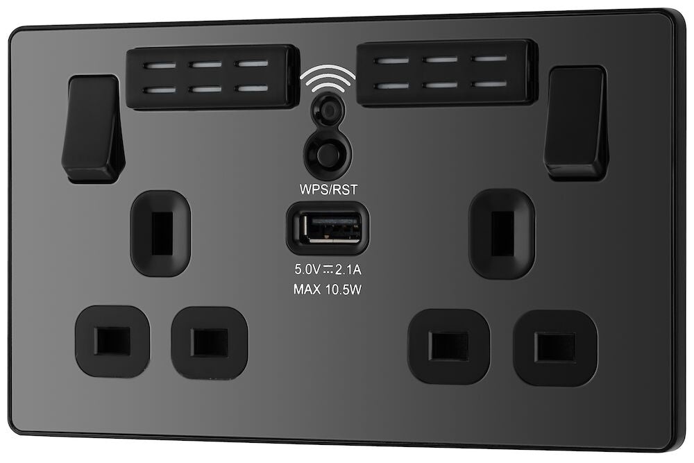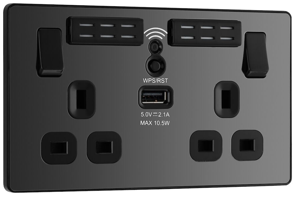 BG Evolve Black Chrome WiFi Extender with 13A double USB Socket PCDBC22UWRB