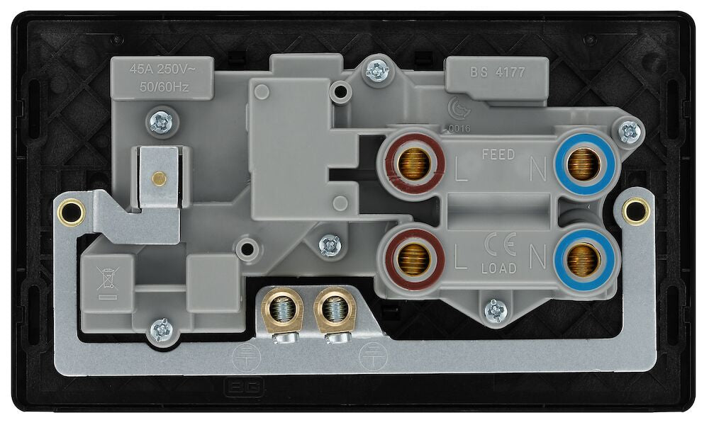 The PCDMB70B is a 45A cooker unit with double pole switch with LED from the BG Evolve range, finished in matt black. The BG Evolve range is new on the outside with its polycarbonate front plates and contrasting frame, but has the same internal technology as the BG Nexus Metal range. With interchangeable front plates, the Evolve range allows you to move with the trends without losing the level of quality and reliability.