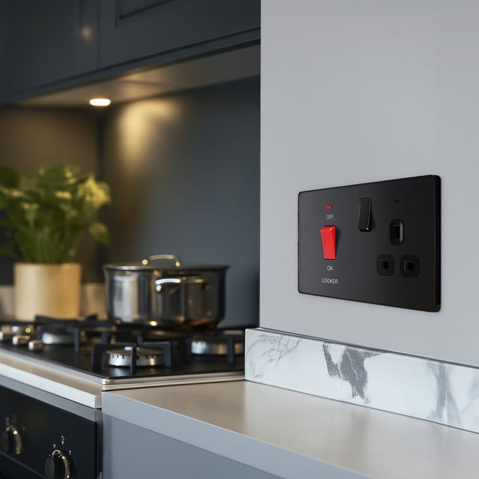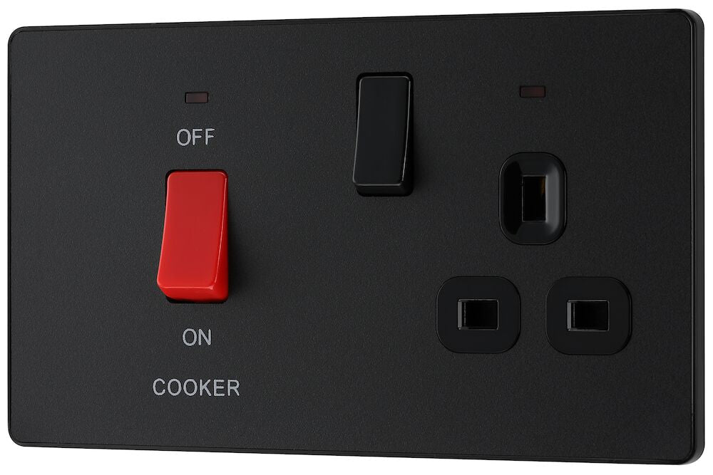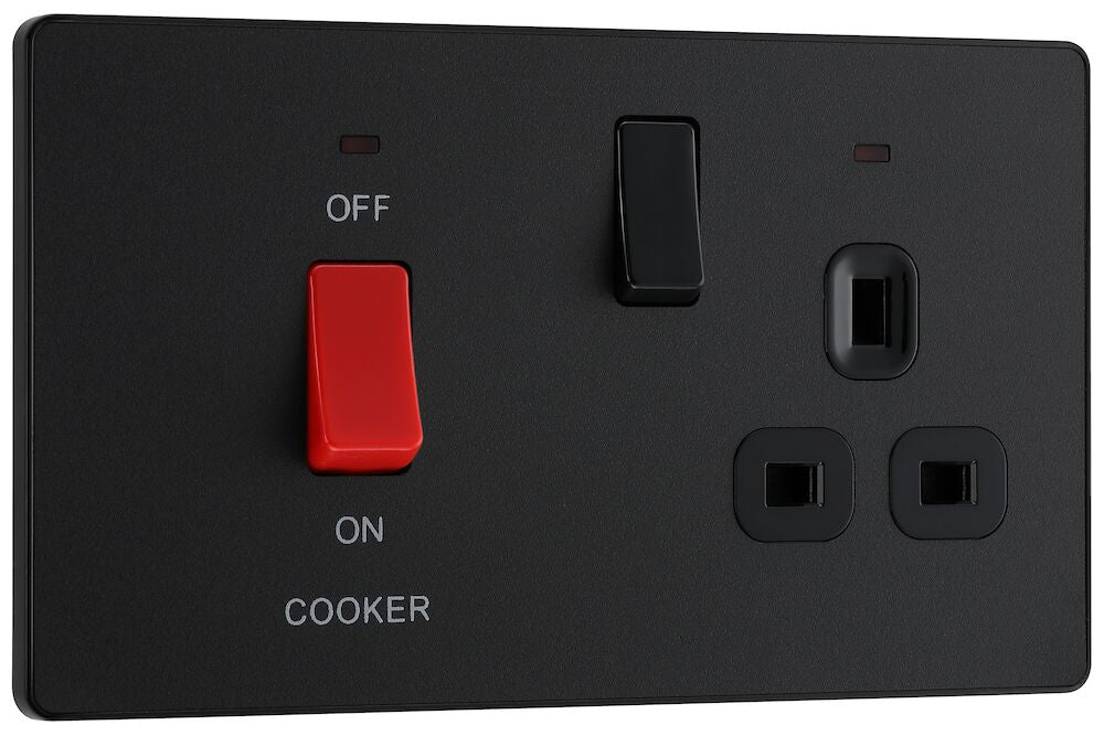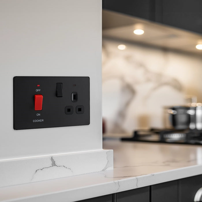 BG Evolve Matt Black 45A Cooker Switch with double pole switch and LED PCDMB70B