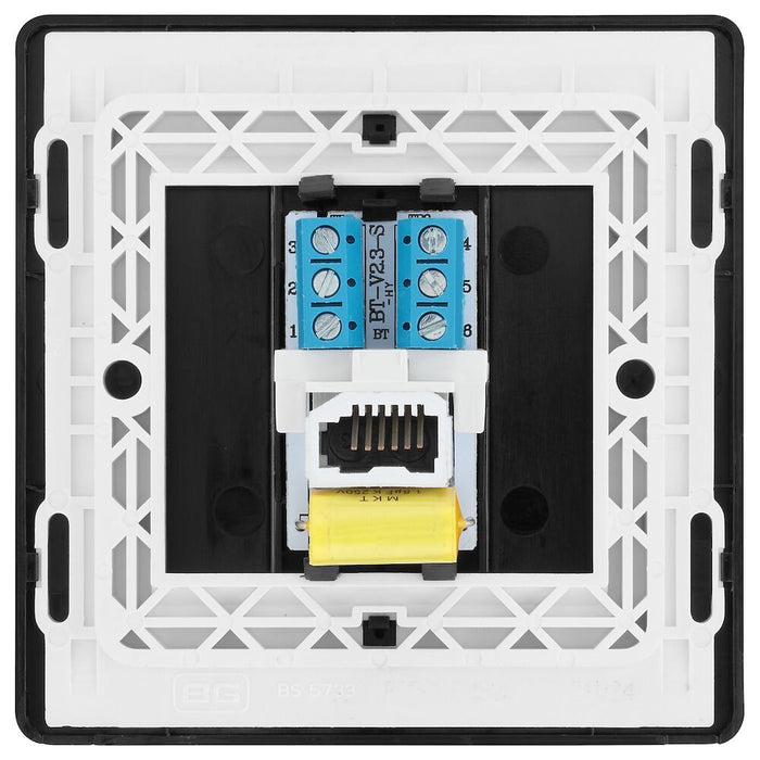 The PCDMBBTM1B is a master telephone socket from the BG Evolve range, finished in matt black and built using the BG Euro Modular system. The BG Evolve range is new on the outside with its polycarbonate front plates and contrasting frame, but has the same internal technology as the BG Nexus Metal range. With interchangeable front plates, the Evolve range allows you to move with the trends without losing the level of quality and reliability.