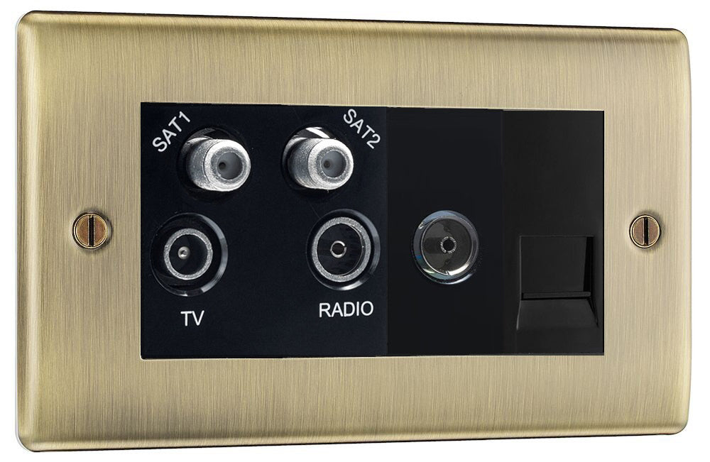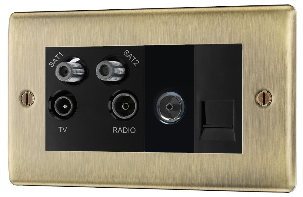 BG Nexus Metal Antique Brass Quadplex Combination TV Socket NAB69B