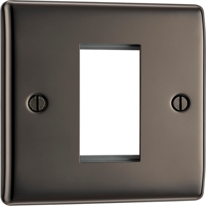 The NBNEMS1 is a 1G euro plate from the BG Nexus Metal range, finished in black nickel. This range of switches and sockets has been designed with a modern, slim profile and has a lightly lacquered surface to reduce fingerprint marks.