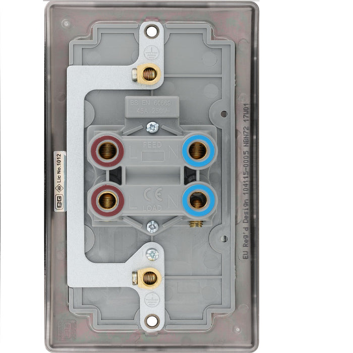 The NBN72 is a 45A cooker switch from the BG Nexus Metal range, finished in black nickel. This range of switches and sockets has been designed with a modern, slim profile and has a lightly lacquered surface to reduce fingerprint marks.
