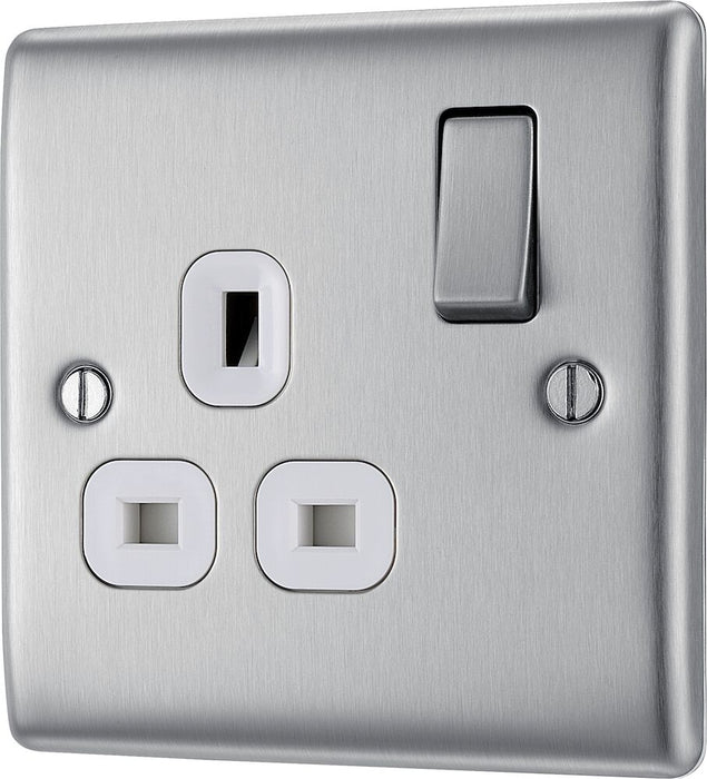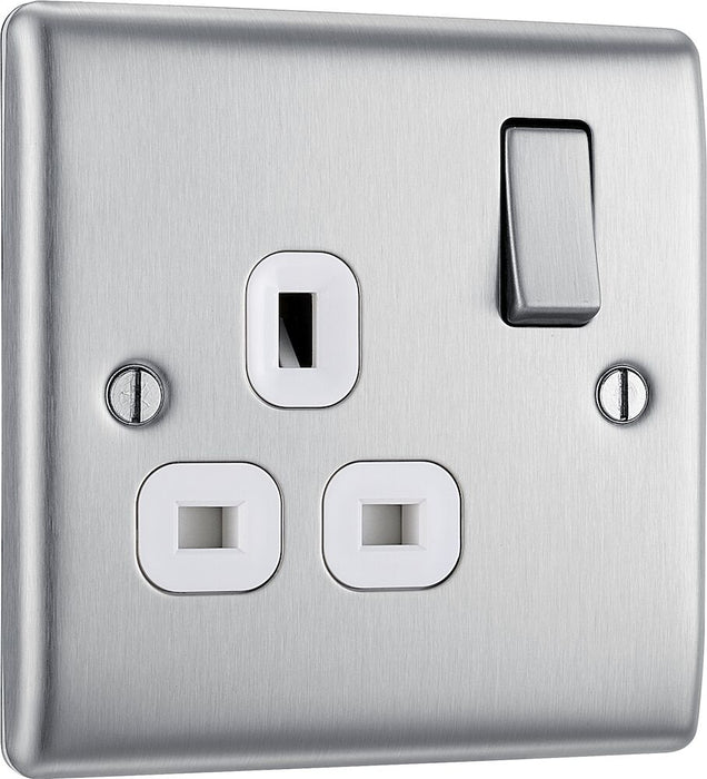 BG Nexus Metal Brushed Steel 13A Single Socket NBS21W