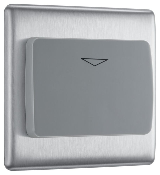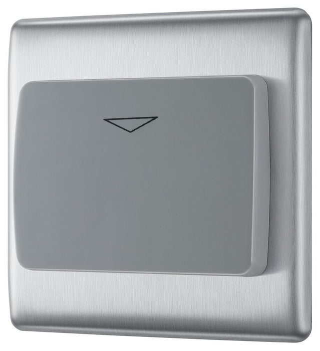 The NBSKYCSG is a hotel key switch from the BG Nexus Metal range, finished in brushed steel and built using BG Nexus Euro Modular system. This range of switches and sockets has been designed with a modern, slim profile and has a lightly lacquered surface to reduce fingerprint marks. The BG Nexus Metal range of switches and sockets comes with colour coded screws and has a full grid system to match.