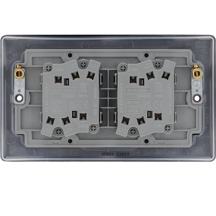 The NFB44 is a 4G 2W light switch from the BG Nexus Metal range, finished in Matt Black. This range of switches and sockets has been designed with a modern, slim profile and has a lightly lacquered surface to reduce fingerprint marks.