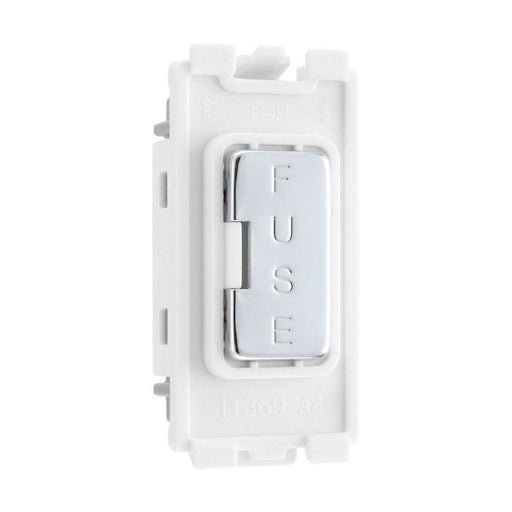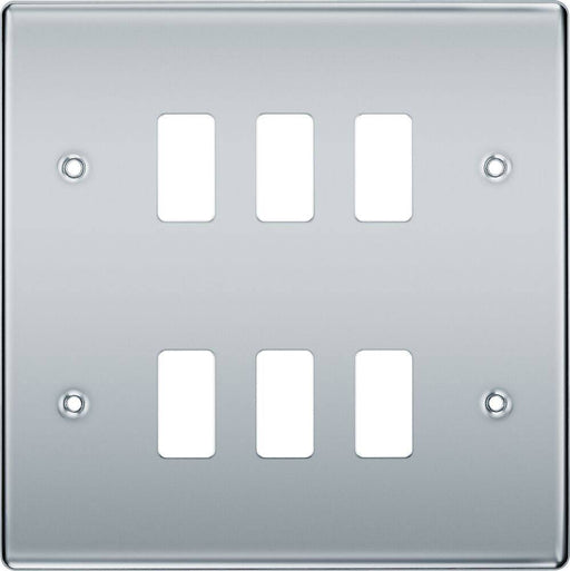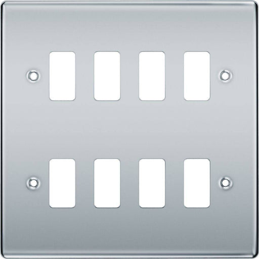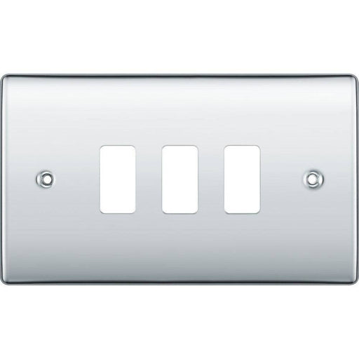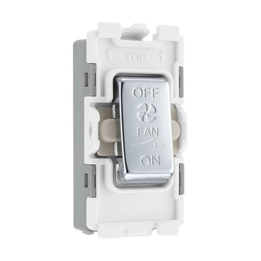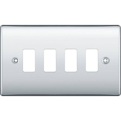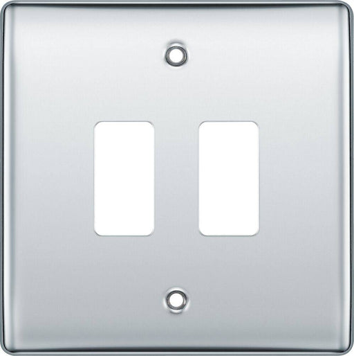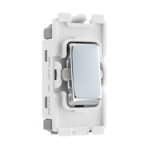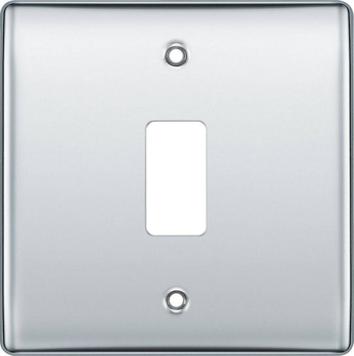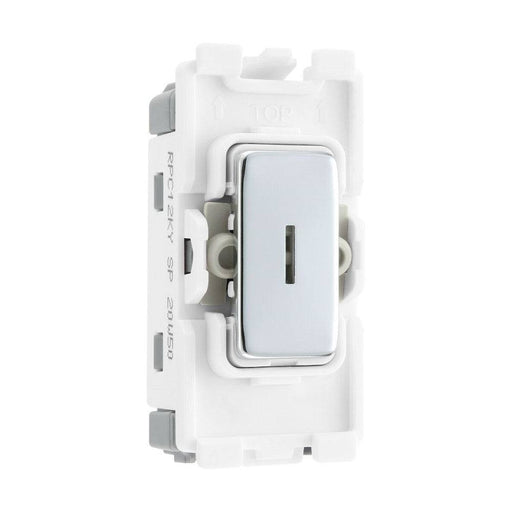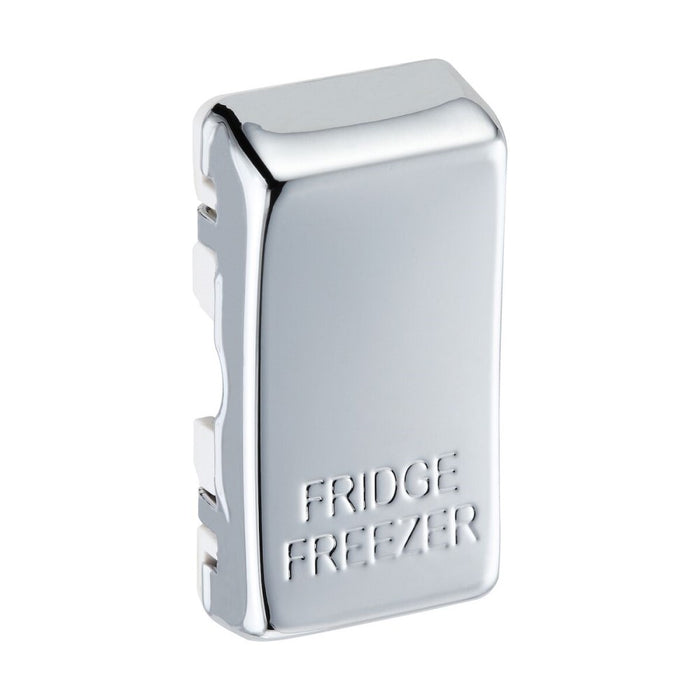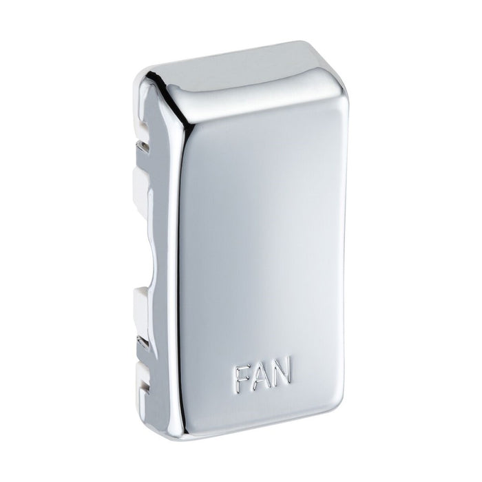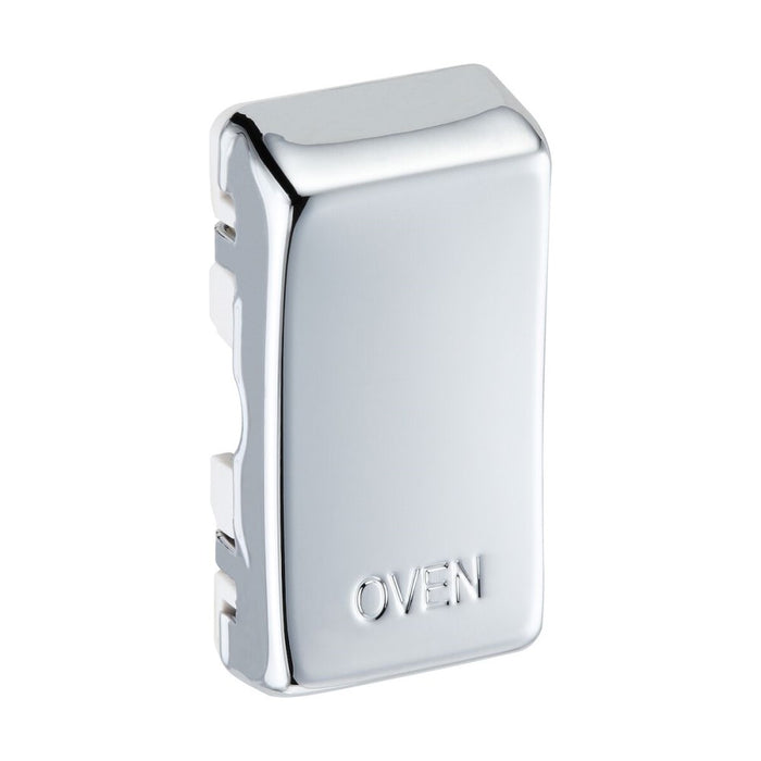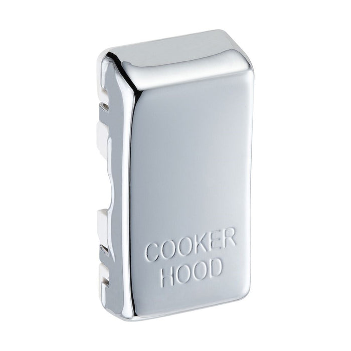 The BG Nexus Metal Polished Chrome appliance engraved grid rockers are designed for the RPC30 grid module. The cap clips onto the front of the grid module, offering a simple design with no visible plastic.