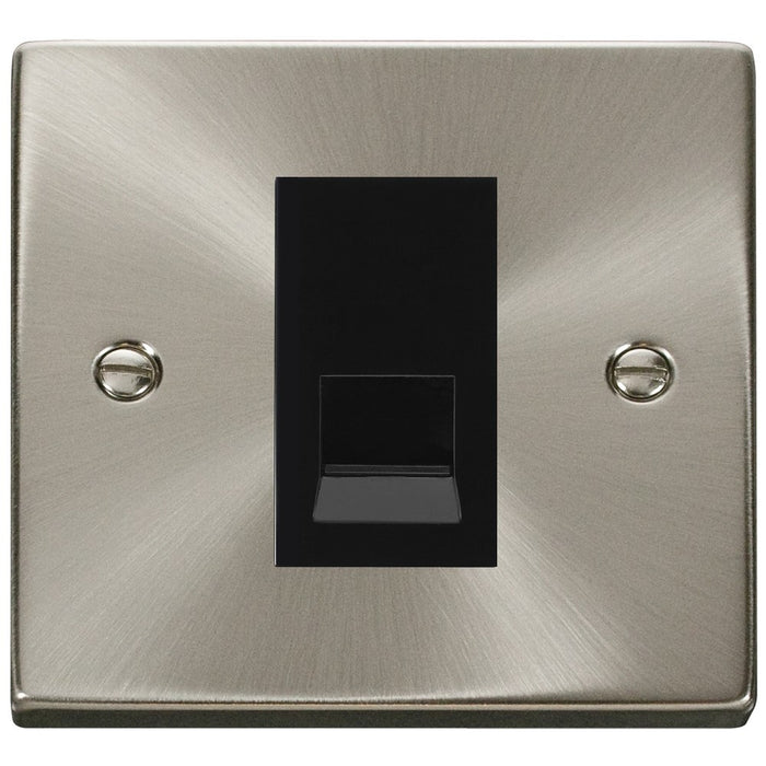The VPSC115MBK is a Single RJ11 Socket from the Click Deco range by Scolmore, finished in Satin Chrome. The Click Deco range has a distinctive raised plate, squared edge finish and is constructed with premium stainless steel for a long-lasting finish.