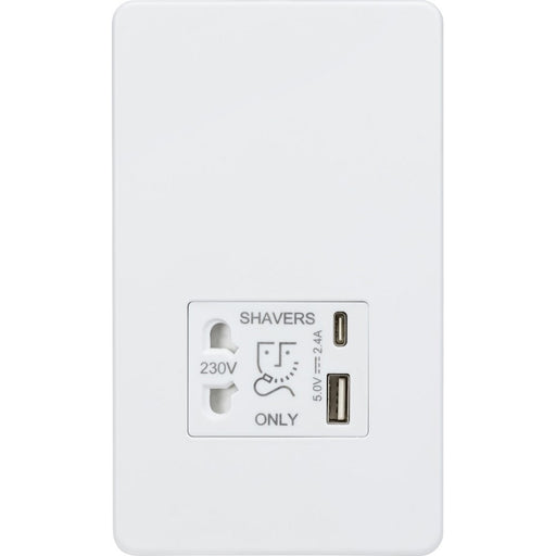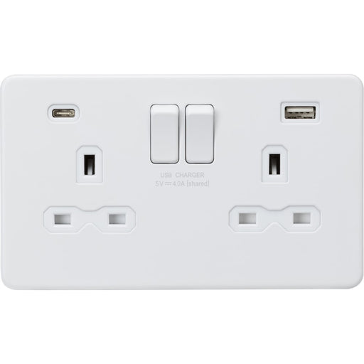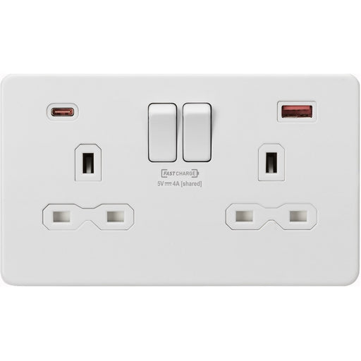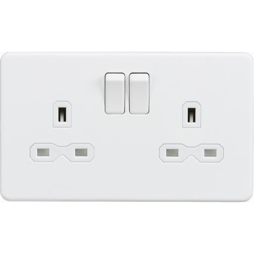 Knightsbridge Screwless Matt White Double Socket Combination Plate SFR998MW