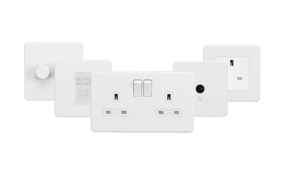 The SFR998MW is a double socket combination plate in Matt White from ML Knightsbridge. Constructed from a premium grade steel, the Matt White Screwless range has a low profile plate with a 4.3mm projection with seamless white inserts.